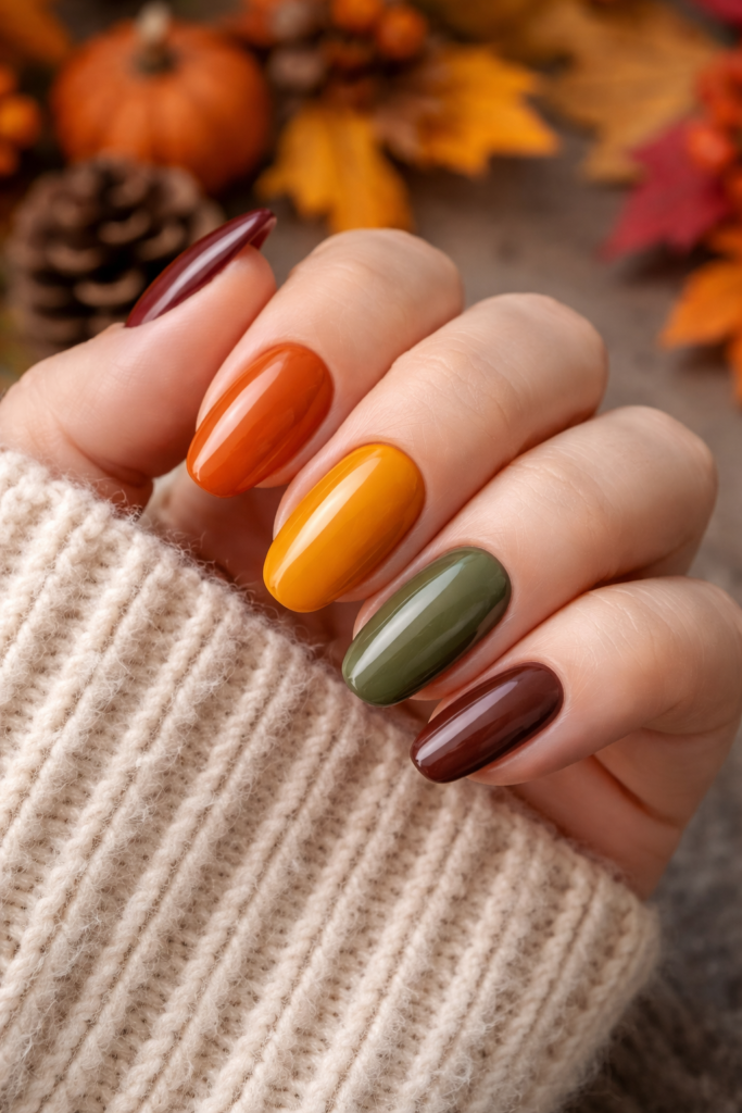 Matte finishes instantly make fall colors feel richer and more refined. Deep oranges, reds, and browns look especially stunning in matte form.